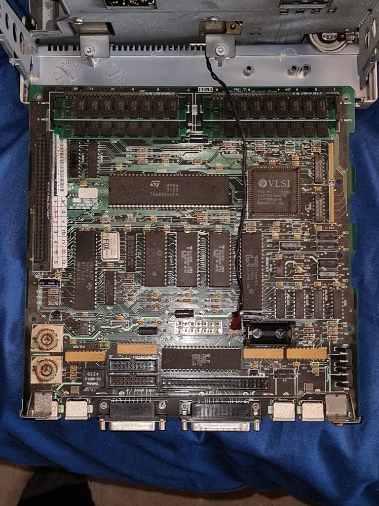 Ports wise it has two ADB (Apple Desktop Bus) sockets, an external disc drive port, SCSI port, and printer, modem, and external speaker sockets