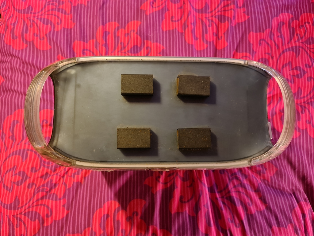 There are opaque handles in all four corners which make carrying the machine easy, although I'm not sure what the metal tubes on the top and bottom are for???