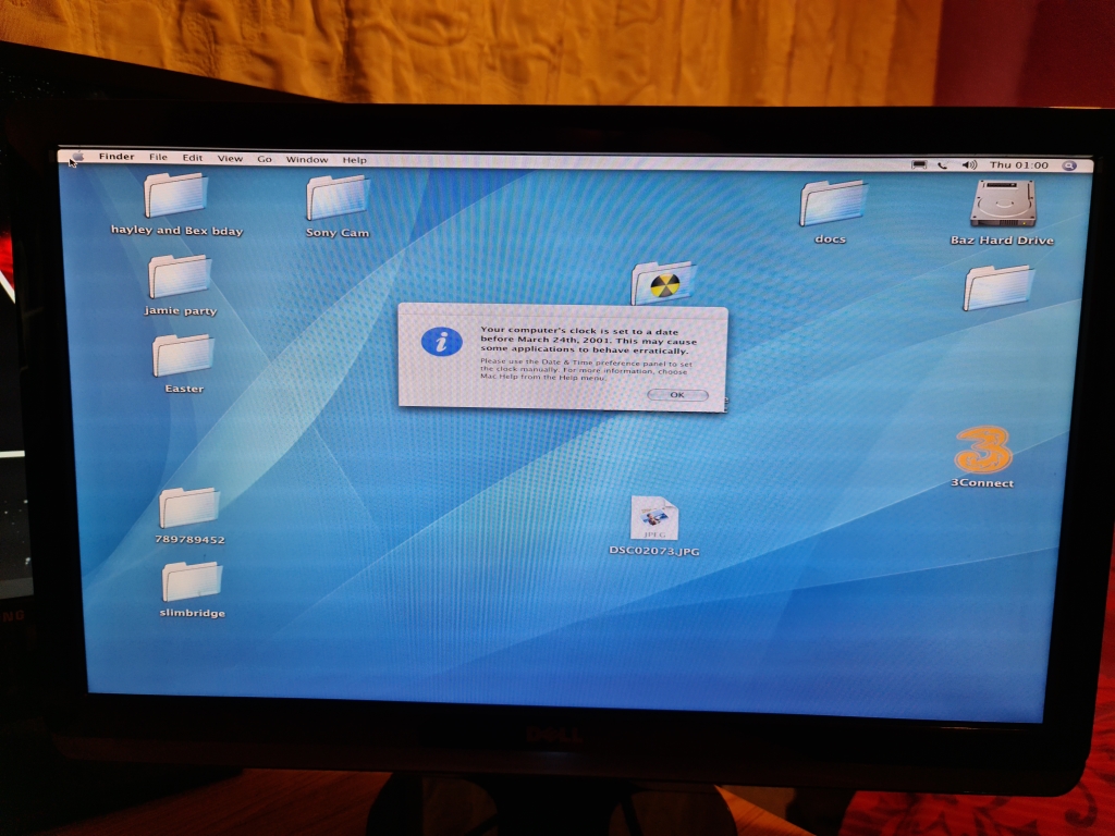 I had taken the lithium battery out already, so the OS gives the usual warning about the date being wrong, I have cleaned up the desktop