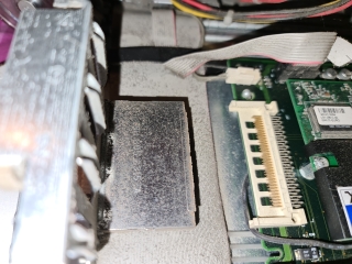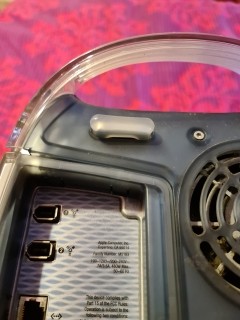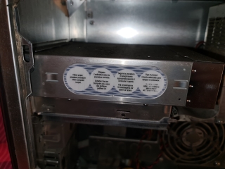The unit has been well used as the grime will attest to, but it seems to work just fine, the DVD-ROM drive is the top drawer, it hinges down to reveal a normal drive, there is a small speaker on the front of the unit, and three buttons, the large one is the power button, the two lower buttons are reset on the left, and I've no idea what the right one does as nothing happens when you press it