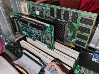 The expansion slots with AGP graphics and a serial/parallel card installed