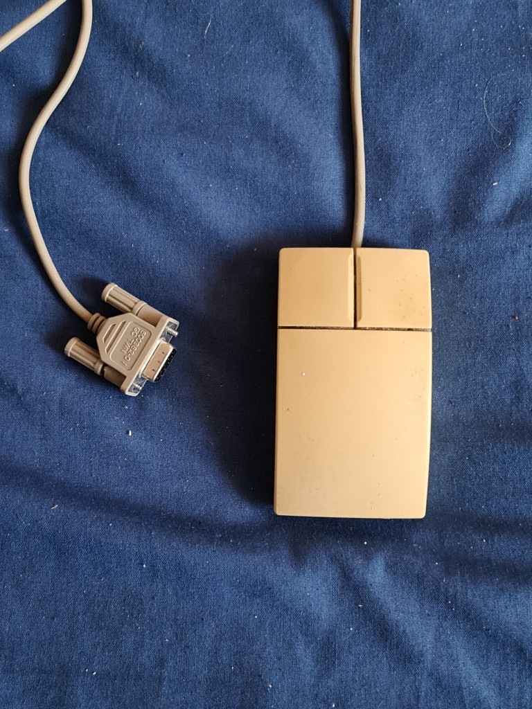 A serial mouse, it looks like the mouse from my Dell Optiplex 433sl, but with a 9 pin D Sub connector instead of PS/2