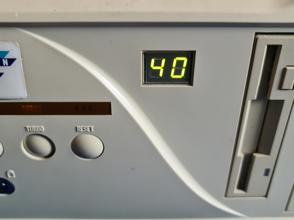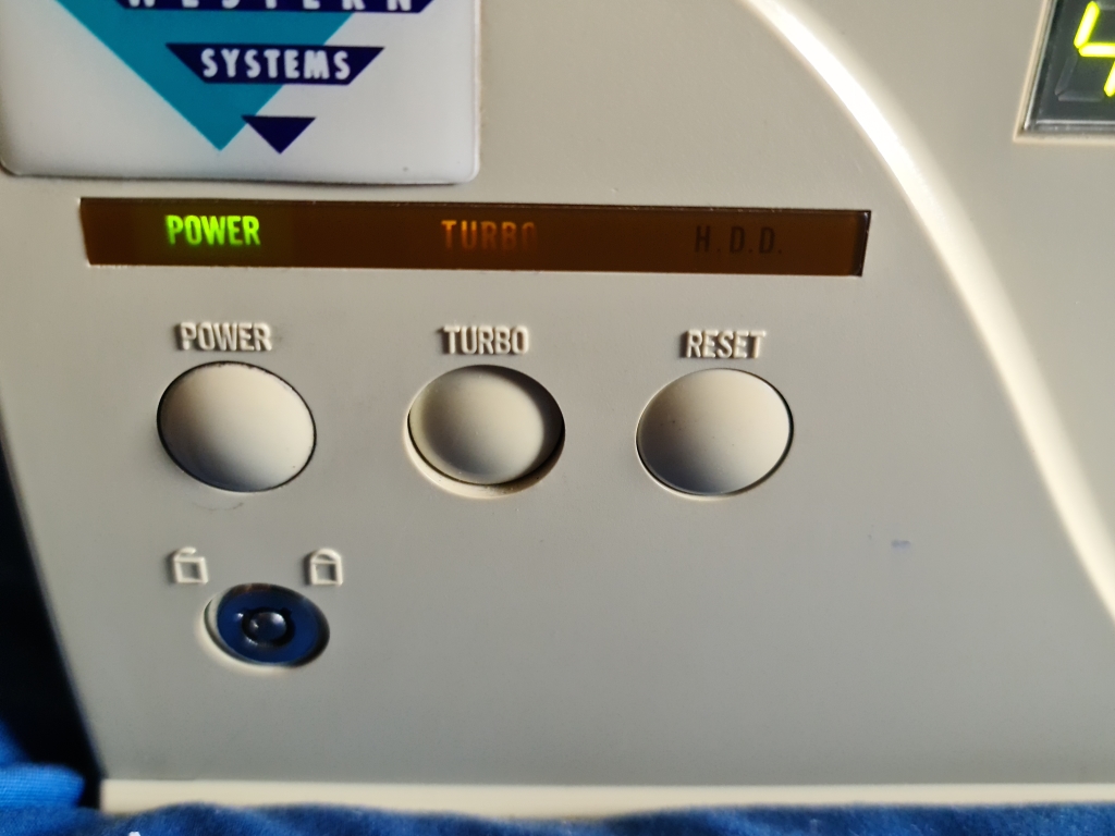 The Turbo button switches between Lo and 40, the buttons have lights above them, including the reset button which lights when you press reset