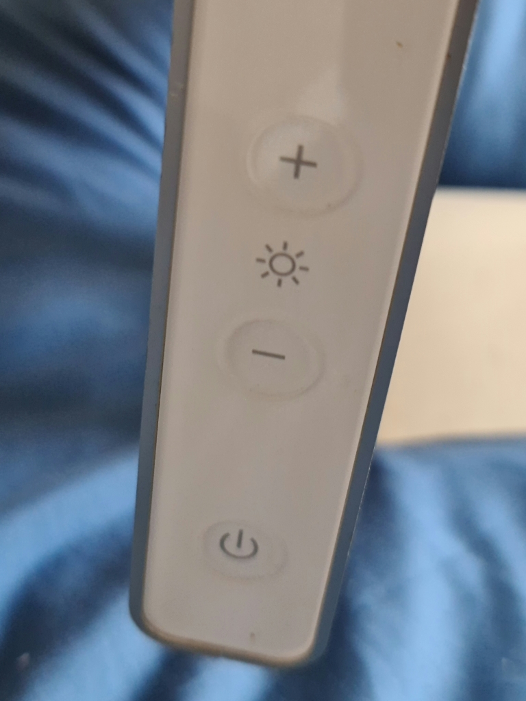 The only controls are power, and brightness up and down, these are touch controls