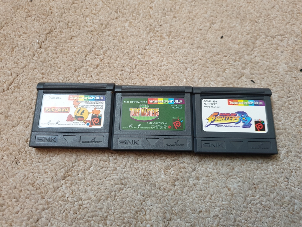 Games include an arcade perfect version of Pac Man, Neo Turf Masters, and King of Fighters R2