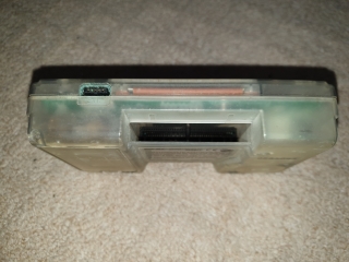 The rear of the unit contains the cartridge slot and two battery compartments, one for two AA's and the other for a CR2032 battery to keep the internal clock running and game data safe. Some games could modify their behaviour depending on the time and date.
