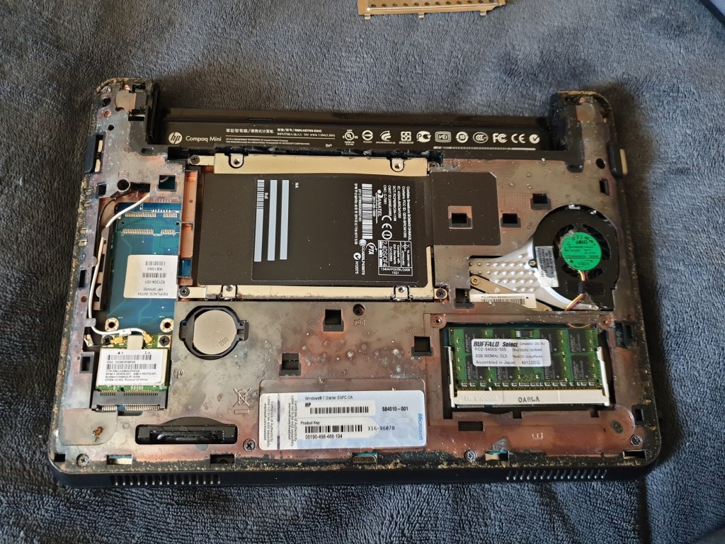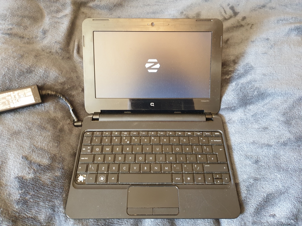 You can see the left CTRL key is missing, and also the battery won't hold any kind of charge, but it does work, and is quite fast when running Linux