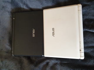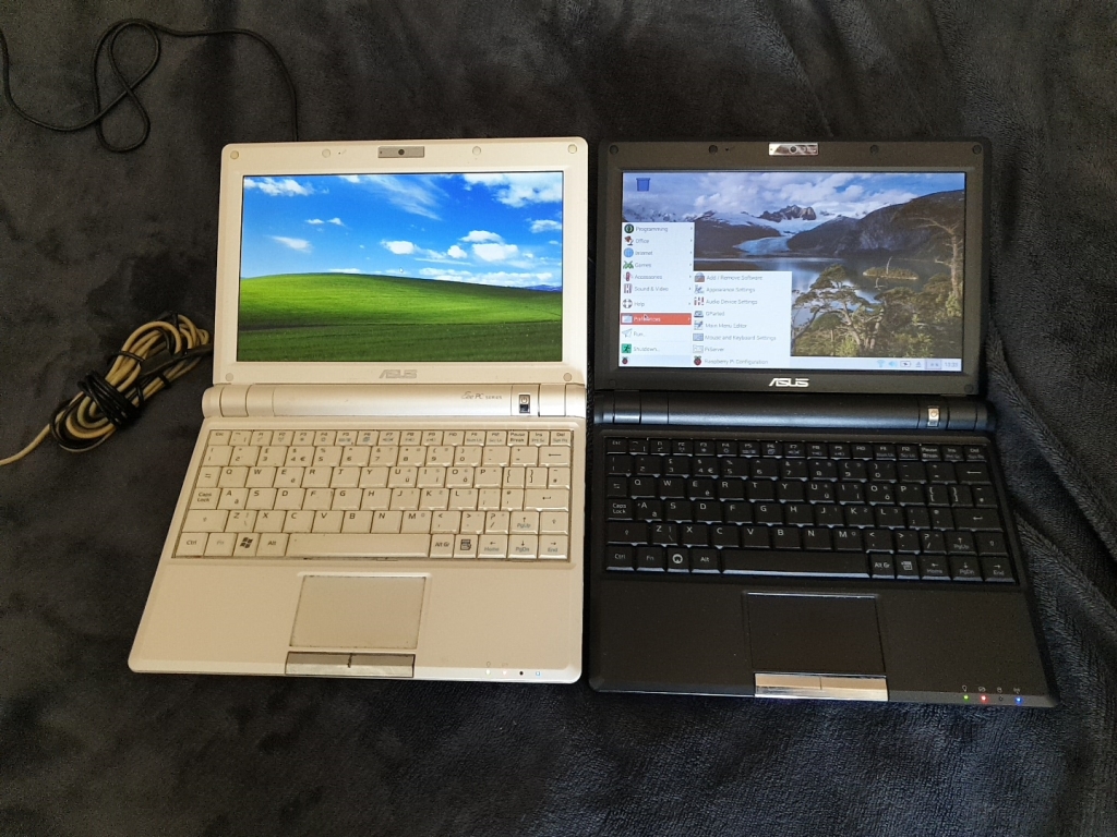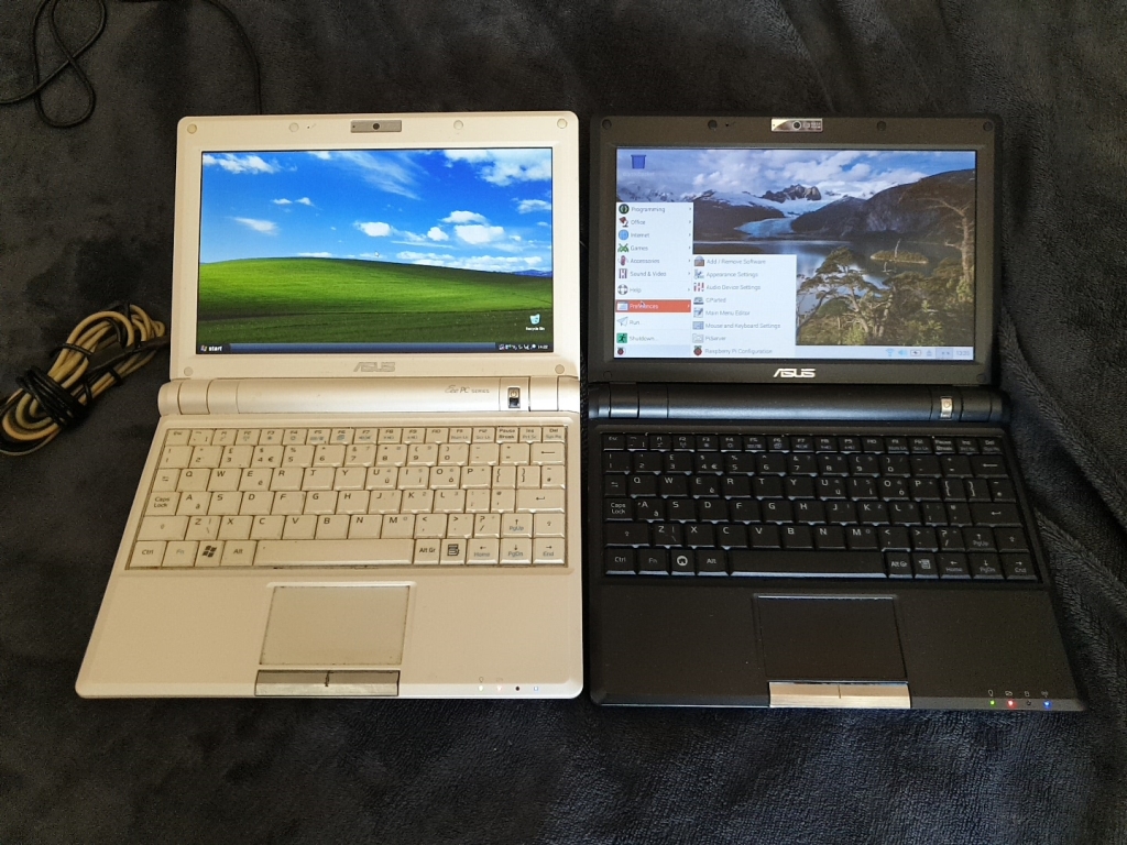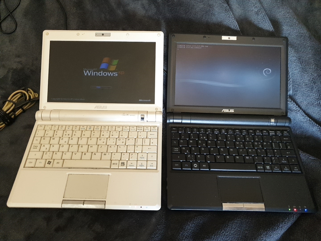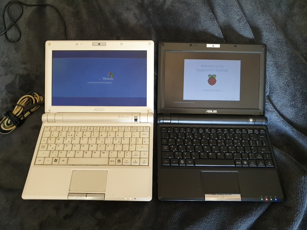 Both netbooks have finished loading now, Raspbian is the winner. But both machines didn't take very long to boot