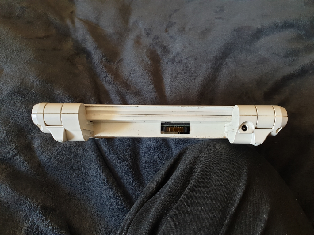 This is the back without the battery fitted, you can see the power socket, which is just a 12V supply with a standard barrel plug