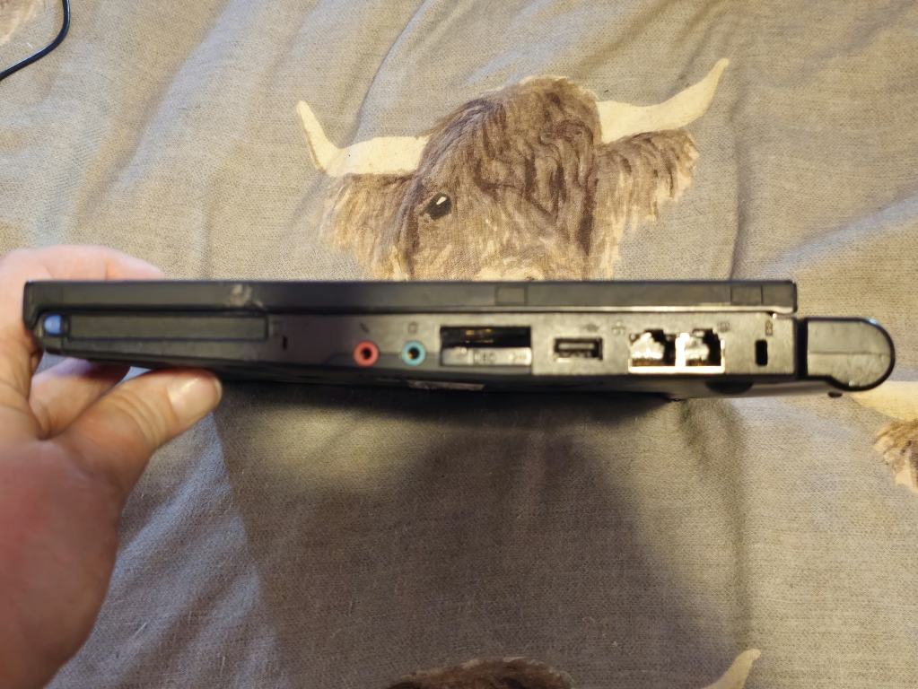 Right side, PCMCIA, audio sockets, SD card reader, USB, Ethernet and modem