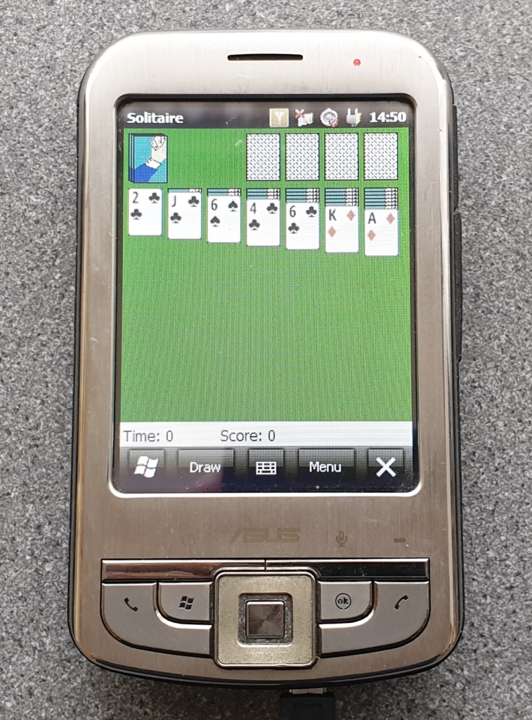 This PDA was donated to me by my sister, it used to be a work phone. It is branded as a Vodafone 1520, but is actually an Asus P550