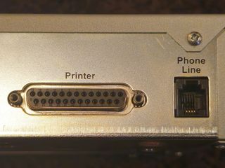 On the rear is the power socket, SCART connector, I would assume it outputs RGB video, a 25 pin printer socket and the phone line connector