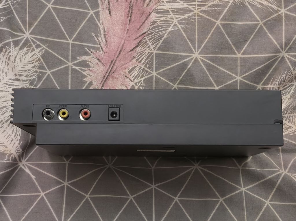 The rear of the console with the RF output, video and mono audio outputs, and power input sockets