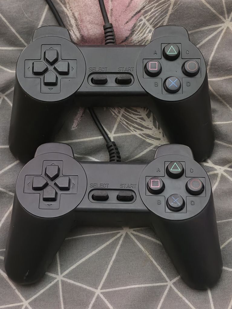 Styled after the original non analogue PlayStation controllers but missing the shoulder buttons, and they are slightly smaller, they feel horrible to hold and the buttons get stuck in the controller