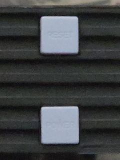 Close up of the very bright power LED, Atari style joystick ports, and the toggle power switch and momentary reset buttons