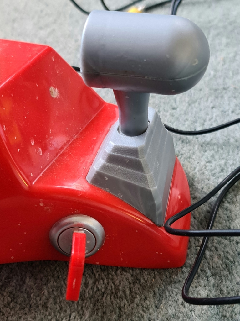 The gear lever is a toggle switch that acts as the accelerator which gives you the choice between slow and fast in gameplay, the menu button is a game reset, the key is the power switch