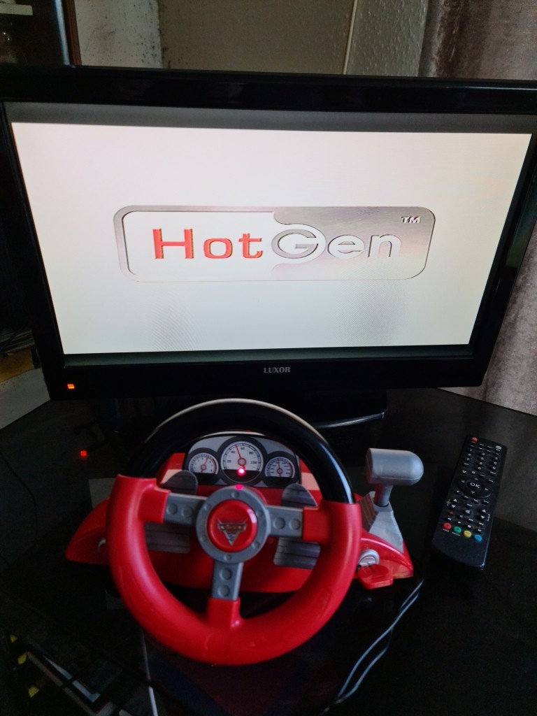 This is the tutorial section, I may get some gameplay pictures soon (I forgot, doh), however it plays better than you would expect, the wheel is analogue for one