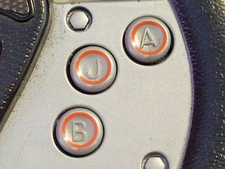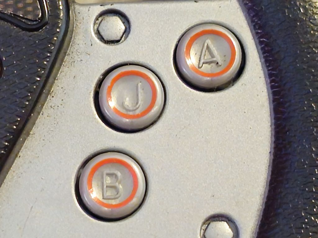 These are the only buttons on the console, a round d-pad, and three action buttons A, B, and J. All I can think of is Accelerate, Brake, Jump?