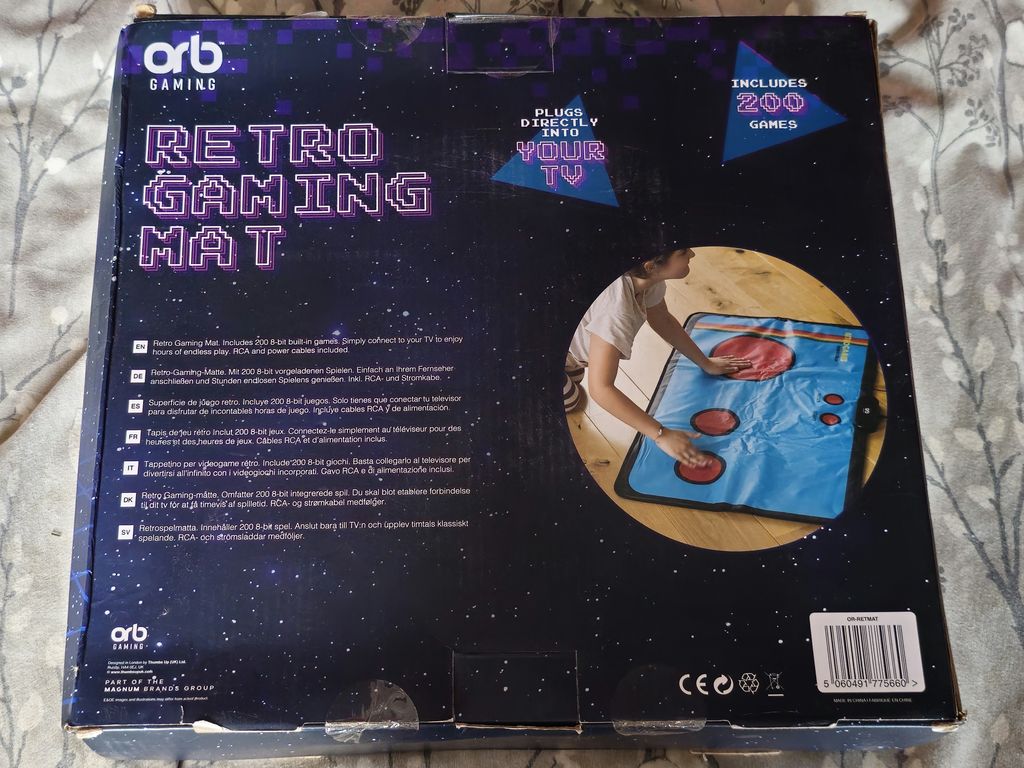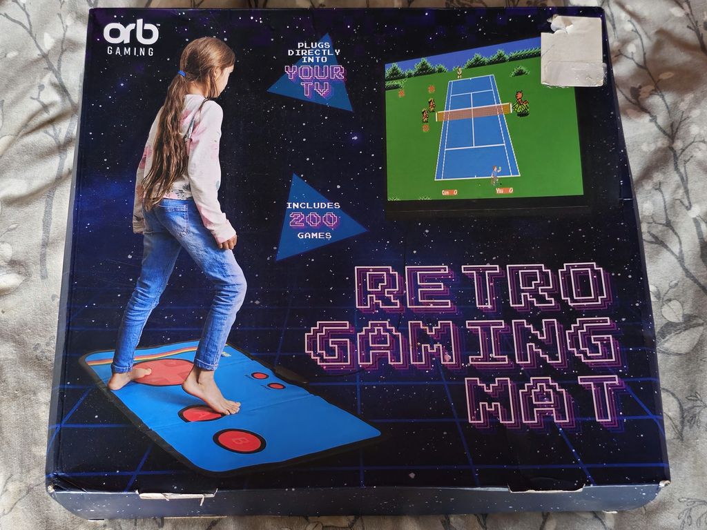 The Retro Gaming Mat itself, it's big, but not as big as the Zone Family Fit, but still big. It seems to be a larger version of the Orb Retro TV Game. Even the box is similar