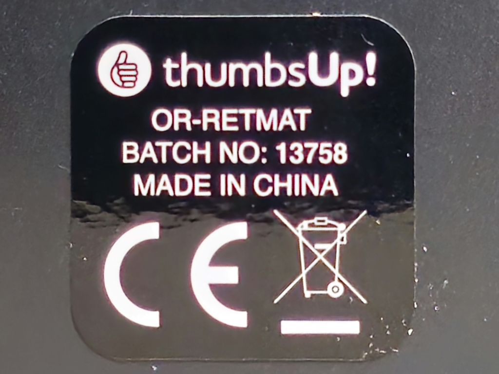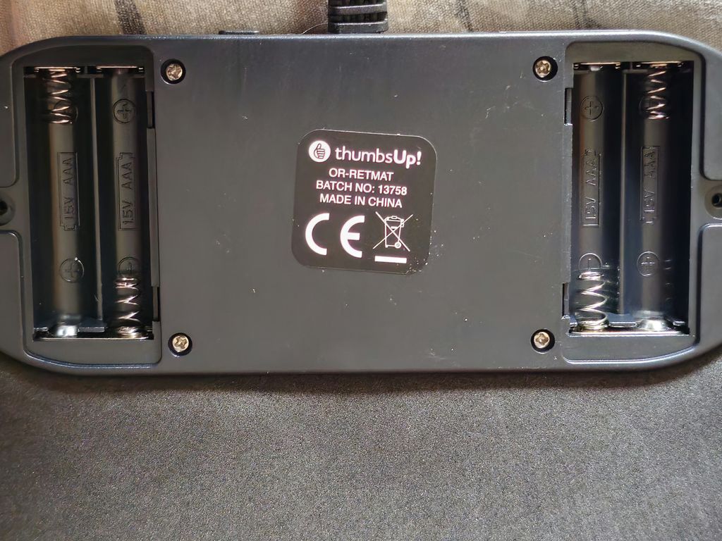 Model label and battery compartments, it can run from four AAA batteries as well