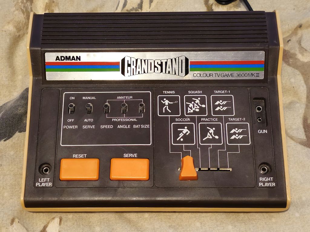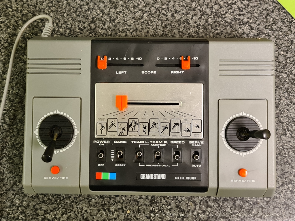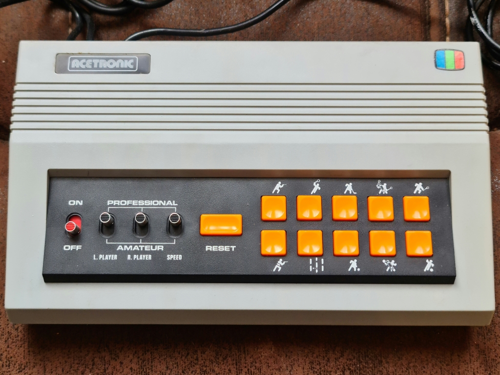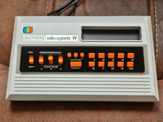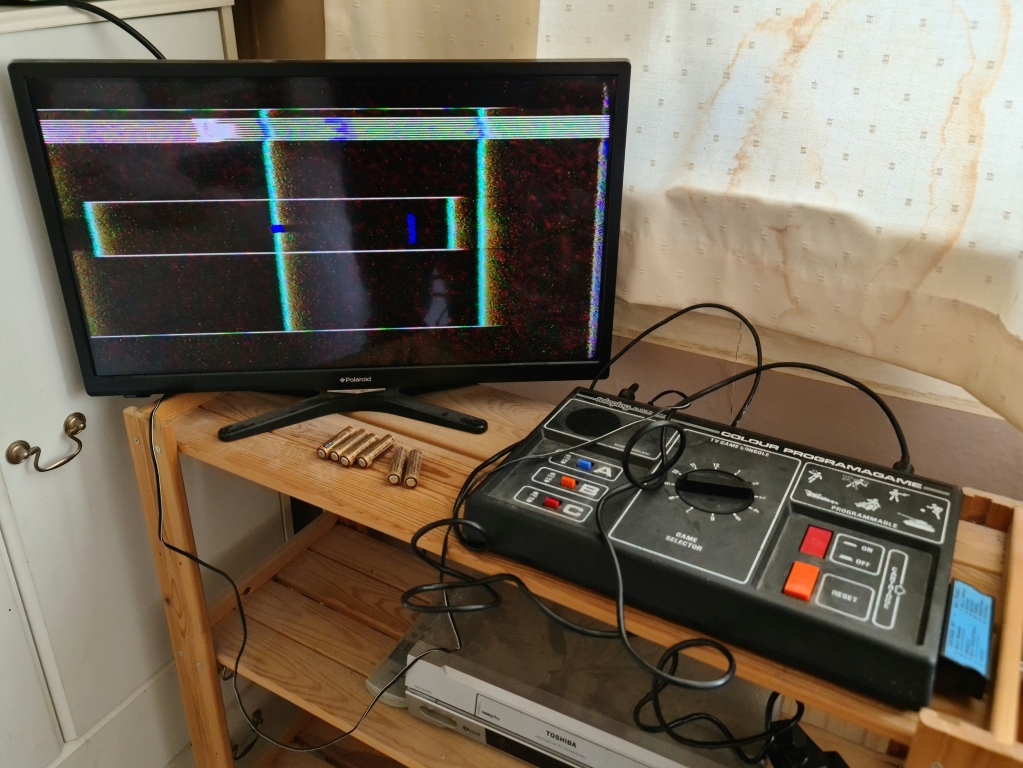 An unusual Pong as it's mains powered and uses an uncommon NTL-600 Pong-on-a-chip which offers three games in colour