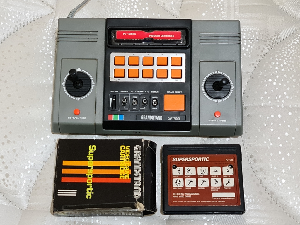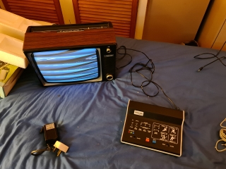 This Grandstand 4600 Pong clone is more or less complete, the rifle attachment is missing some parts, but may still work. I do have the original box for it, but it's in a very poor condition. This has a chance of working, so I will be testing it soon...UPDATE: Yes it does to a degree.