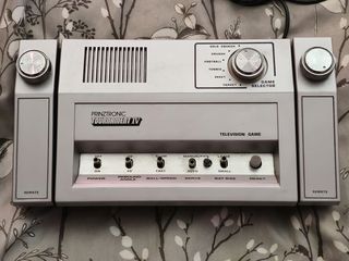 A look at the PONG consoles I have in my collection Long before Call of Duty, Minecraft, or even Sonic the Hedgehog. There was Pong. Using only straight while lines, square balls, the occasional BEEP, and most importantly, your imagination. You could be at Wimbledon, or even at Wembley Stadium scoring the winner in the last few seconds of the game. Pong first hit the home in 1972 with the first arcade console arriving a little later, in the US at least. In the UK we had to wait until 1973 to get our hands on them. Soon a number of manufacturers were churning them out, all pretty much the same, just differing in case styling. However colour backgrounds soon arrived, then different games arrived (based on the same white lines and square balls) There were four different technologies behind the PONG consoles, the very first used analogue components, which could be affected by being in close proximity to humans or the television which caused unstable lines and other strange effects on screen. Next came digital circuits using logic gates and these produced a much more stable image on the screen. The most common were the dedicated PONG on a chip models, using an integrated circuit from companies like General Instruments these were much simpler in design, and therefore cheaper to produce as almost all the circuitry was on the chip, but this made all the models look, sound, and play the same, differing only in case design. There were lots of revisions of the PONG on a chip which offered more games and even colour backgrounds Eventually microprocessors started to appear which could run early primitive software, which led to the PC-50x range with interchangable cartridges which featured games other than PONG, like Breakout and very simple racing games Which of course, were sold separately. There are 57 pong consoles in the museum