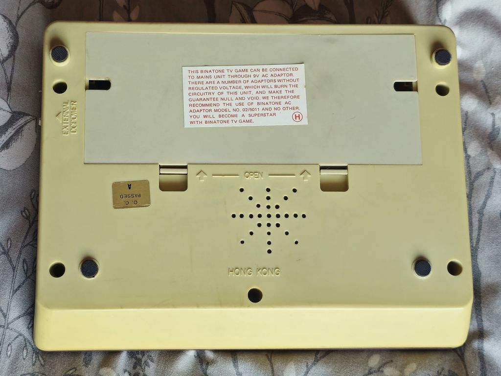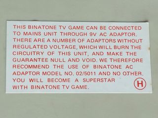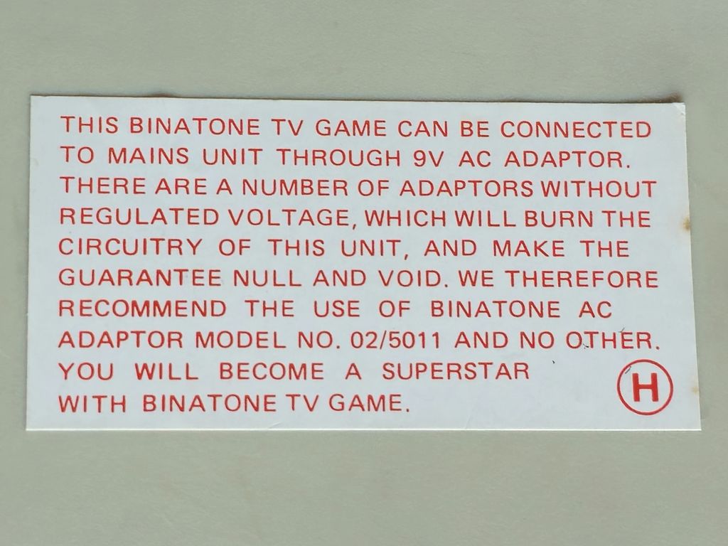 The base of the console with the all important "You will become a superstar with Binatone TV game" sticker