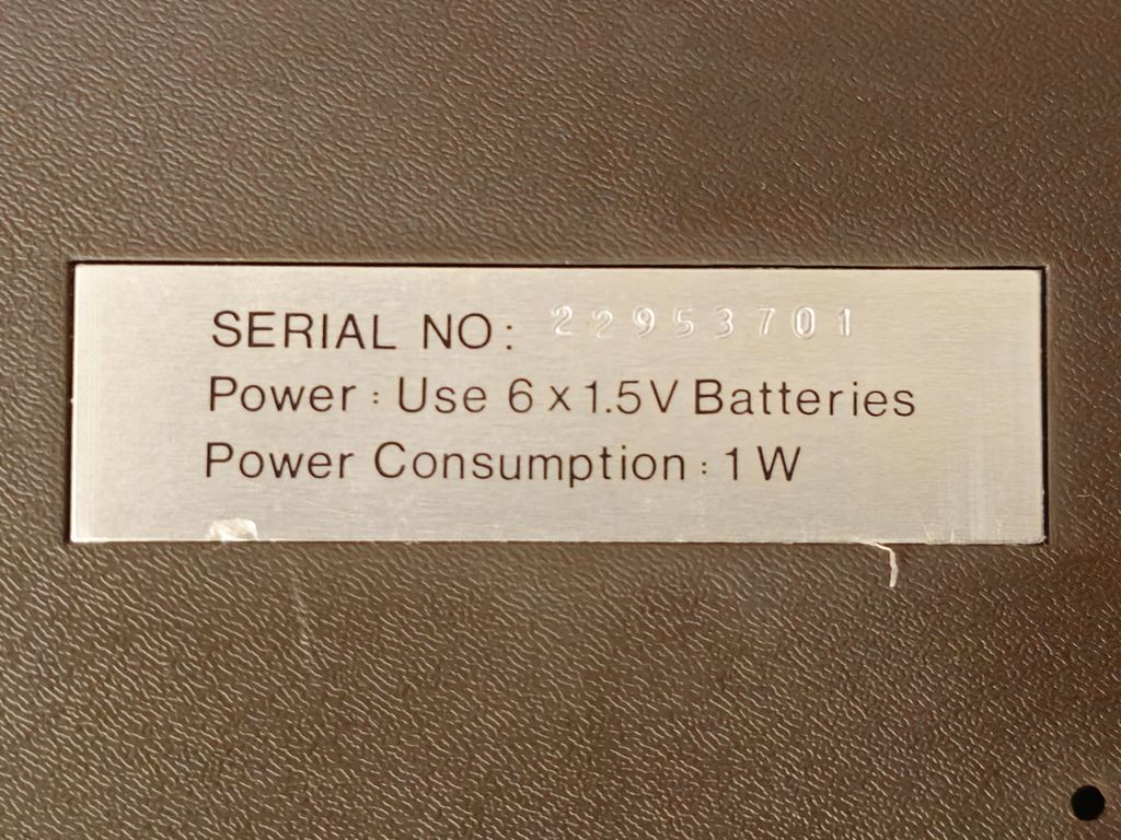 The base of the console houses the battery compartment and model label