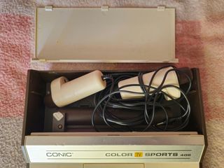 The Iconic, sorry Conic 406 was released in 1977 in Europe, possibly in Germany, that would explain the euro style adaptor. There seems to be a whole range of consoles up to and including cartridge based models. sometimes sold under other brand names. Now I'm going to have to find all of those!