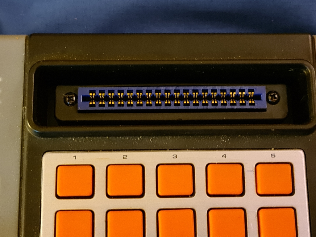 The cartridge slot with plastic cover, you'll note the "PC-Series" text, this is because the console and it's rebadged clones were known as PC-50x and were considered to be part of the first generation of video game consoles