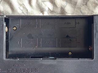 The base of the unit is typical of the brand, with embossed patent text and model label. There is also the battery compartment and speaker