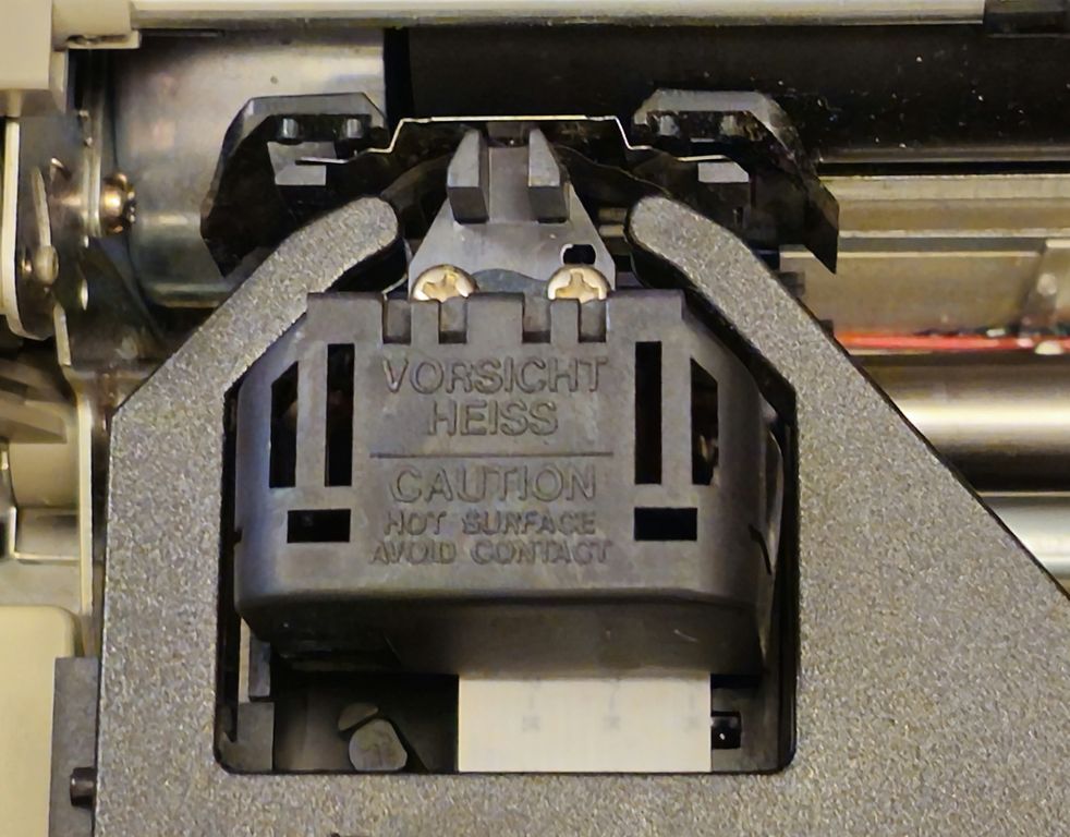 The printer assembled, the plastic attachments have become brittle in their old age and bits are starting to break off