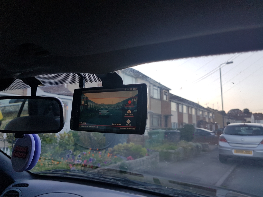 Still to do: Cut a small slot into the roof lining to pass the metal bracket through, so the roof lining doesn't bulge, then tidy up the micro USB power cable with some heat shrink tubing, finally create an Android app that makes it easier to upload video files to my NAS...