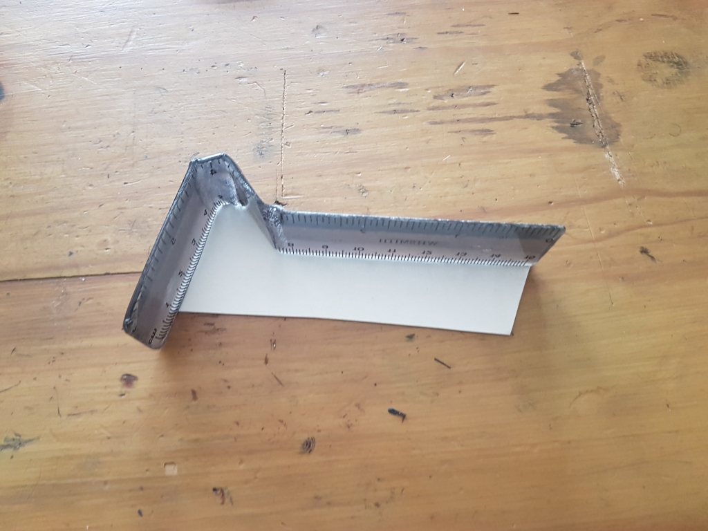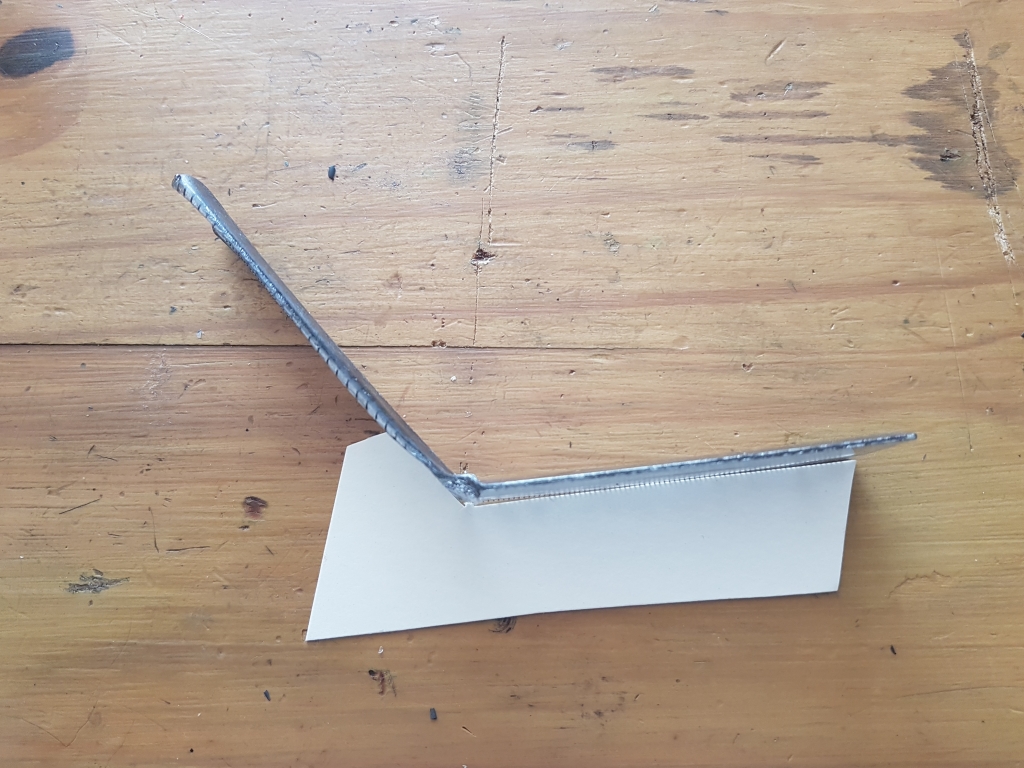 Then as a first draft, the plan was to bend a plastic ruler on the side of a soldering iron to match the cardboard profile, despite being sure I had an old 12 inch ruler somewhere, I could only find a 6 inch one.