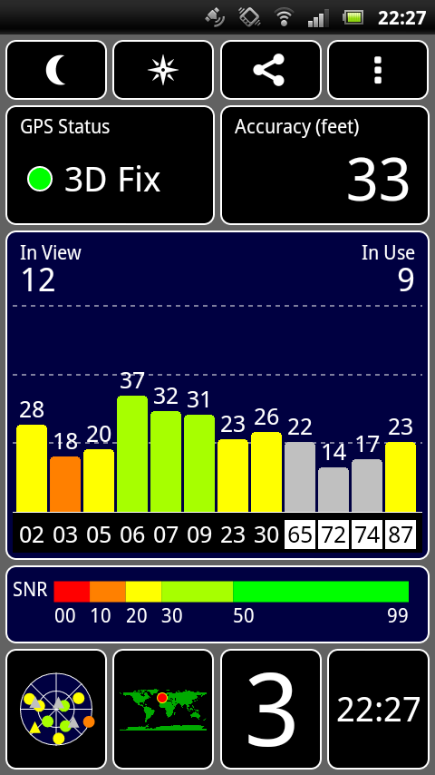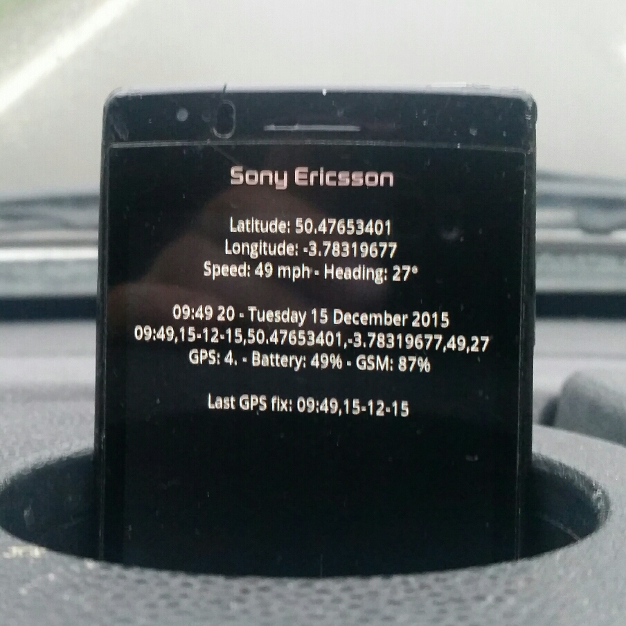 For instance, I have now got the GPS data and I can tell when the last GPS lock was. I can send this data formatted how I want to my PHP script on my web server, and retrieve and process the response. I can get the current time and date. And I can send and receive SMS messages, all within the app.