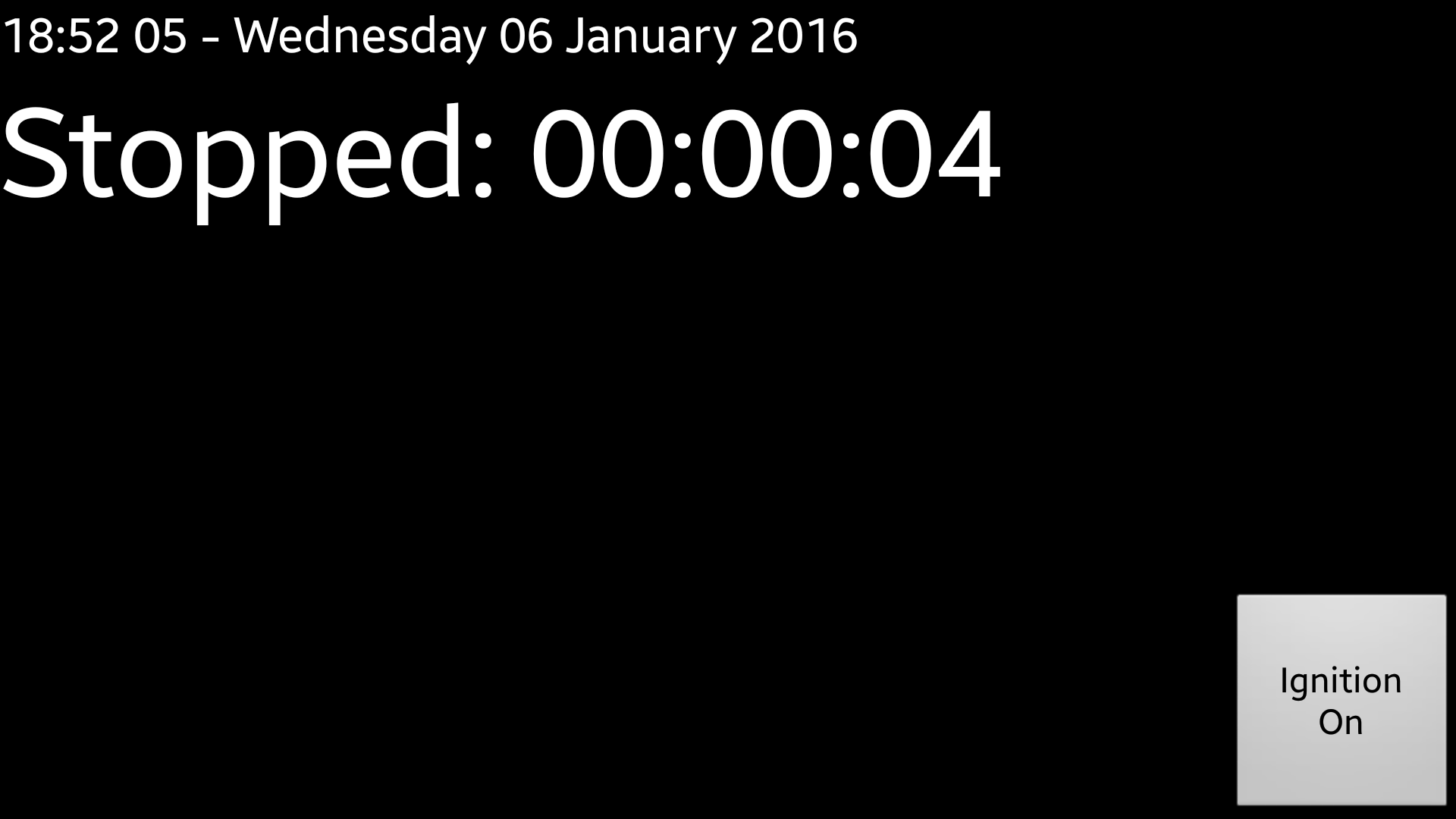 I've restyled the main screen and implemented the stopped counter. The on-screen ignition button is there while I test various methods for blanking and turning on the screen.It's slowly coming together...