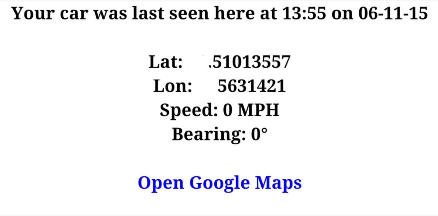 Here is the web site I created to locate my car, it gives the location, speed and direction of travel, and an option to import the data into Google maps.