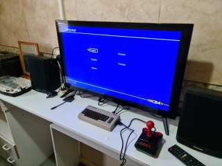 After searching for a USB adaptor that has a normal USB socket instead of a USB-C socket, I fired it up and it asks for the language, once that's selected, it goes to the main menu, which is a nice carousel browser with information about each game, there is an annoying SID style tune that plays over the menu, but you can switch this off