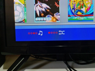 This is the screen select screen, I chose European 4:3 CRT because I can, it was at this point I discovered the four dots in the bottom left are telling you what button to press on the joystick rather than what page you're on (I didn't read the book that much)