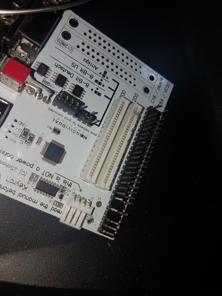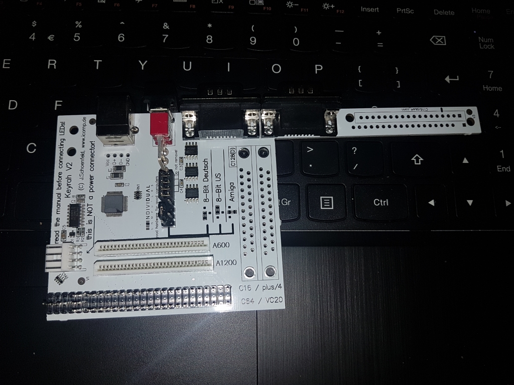KeyrahV2 modificationYou can cut the little strip off to make it easier to fit inside the Plus 4 case. Note I had already soldered the Plus 4's keyboard connector onto it.