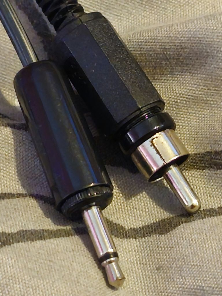 The two plugs connect to the Speccy's Ear and TV sockets, the RF is routed through the Microspeech, and the sound is added to the RF signal, so the Speccy's sound now comes out the TV, along with the speech. The existing RF lead connects to the socket on the back of the Microspeech
