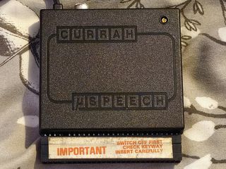This is the Microspeech from Currah for the Sinclair Spectrum, this little unit gave the Speccy speech capability, even if it did sound like a Dalek. It used sounds to produce words so had an unlimited vocabulary, but you may have had to spell words phonetically to produce the correct pronouncement