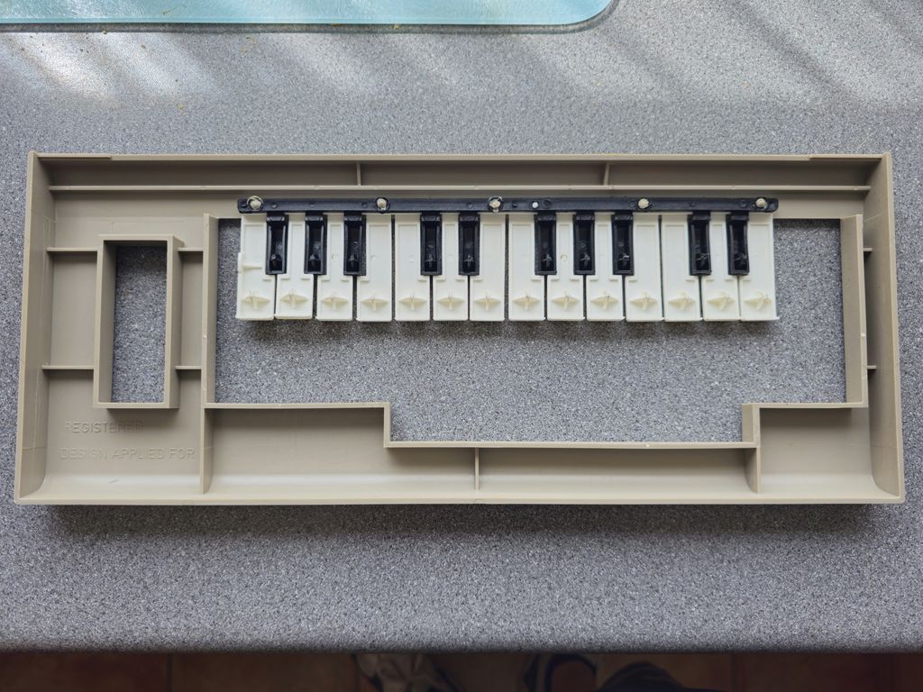 The piano keyboard cover, it does feel very flimsy and that it would break easy. I believe the stickers came with it on a sheet and had to be (badly) applied by the user. The piano keys just press the C64's keys using the top two rows